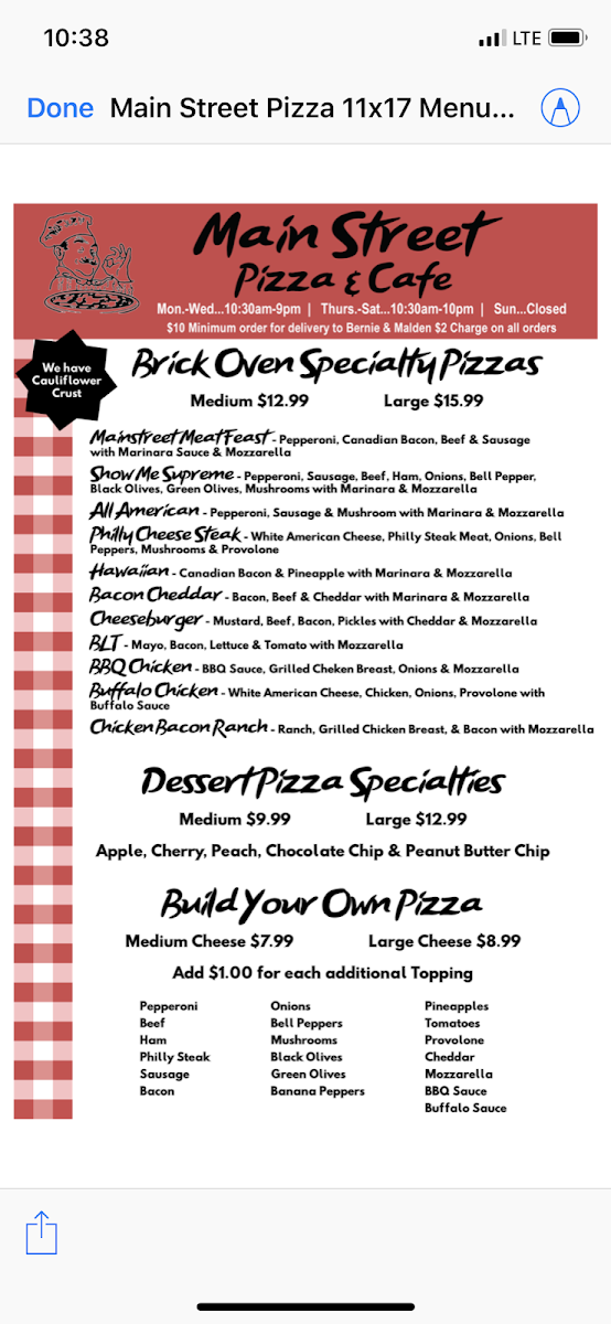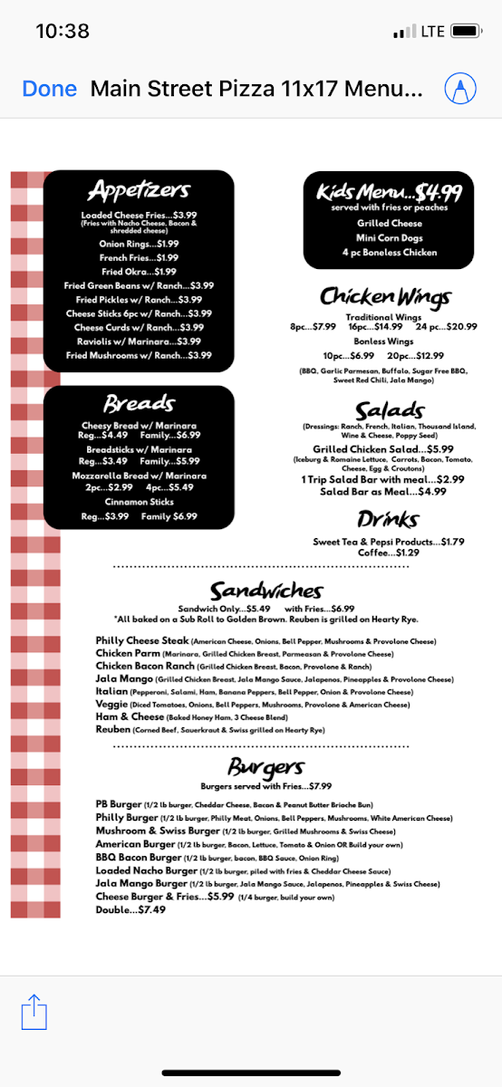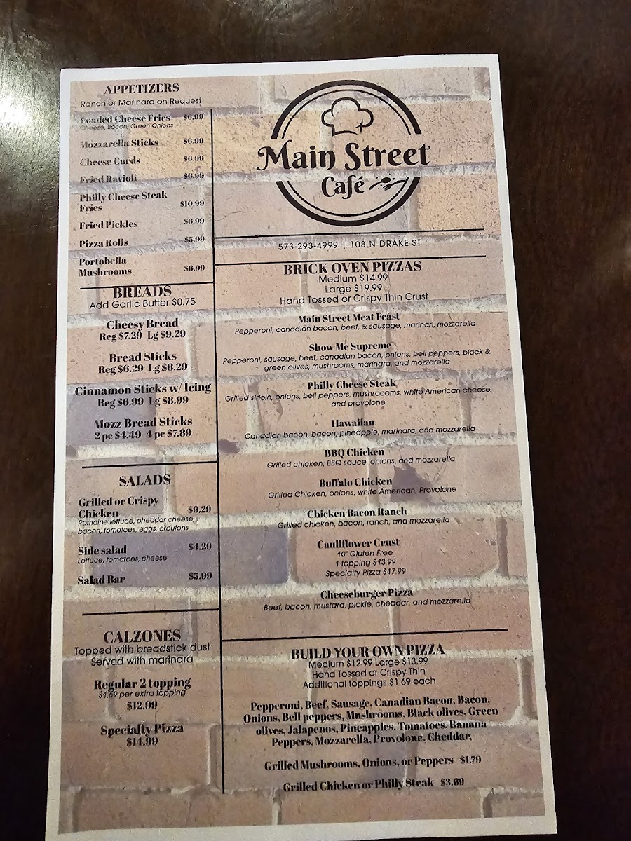 Main Street Cafe Menu
